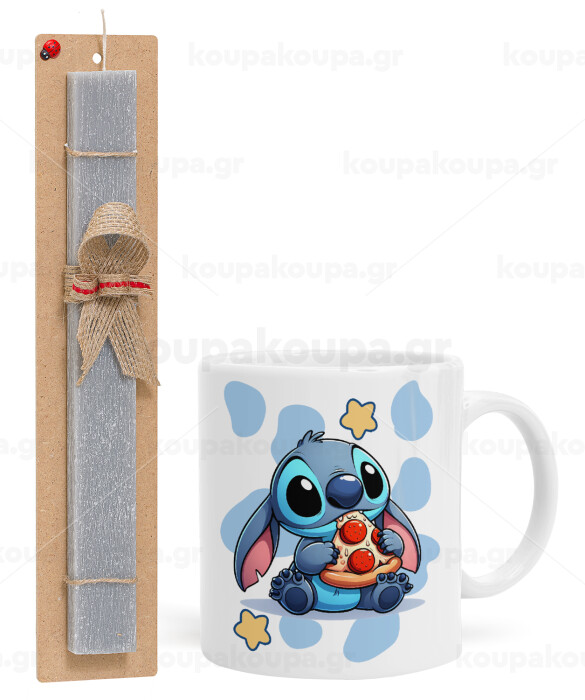 Stitch Pizza, Easter Set, Ceramic Cup (330ml) & Easter aromatic flat candle (30cm) (GRAY)