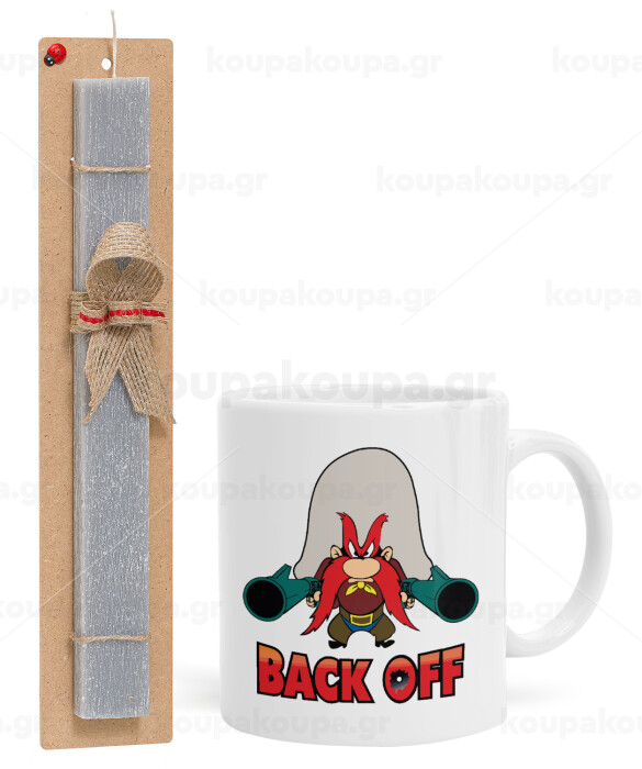 Yosemite Sam Back OFF, Easter Set, Ceramic Cup (330ml) & Easter aromatic flat candle (30cm) (GRAY)