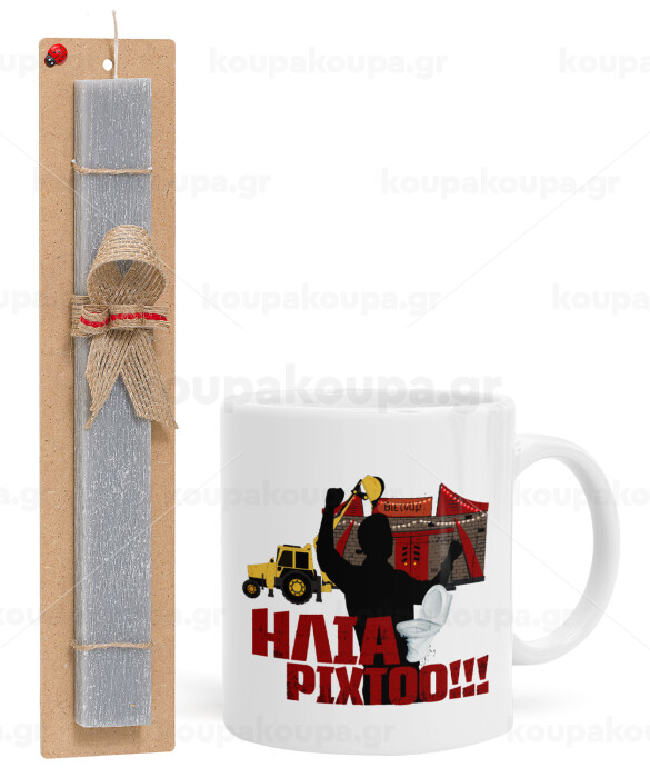 Ηλία ρίχτο!, Easter Set, Ceramic Cup (330ml) & Easter aromatic flat candle (30cm) (GRAY)