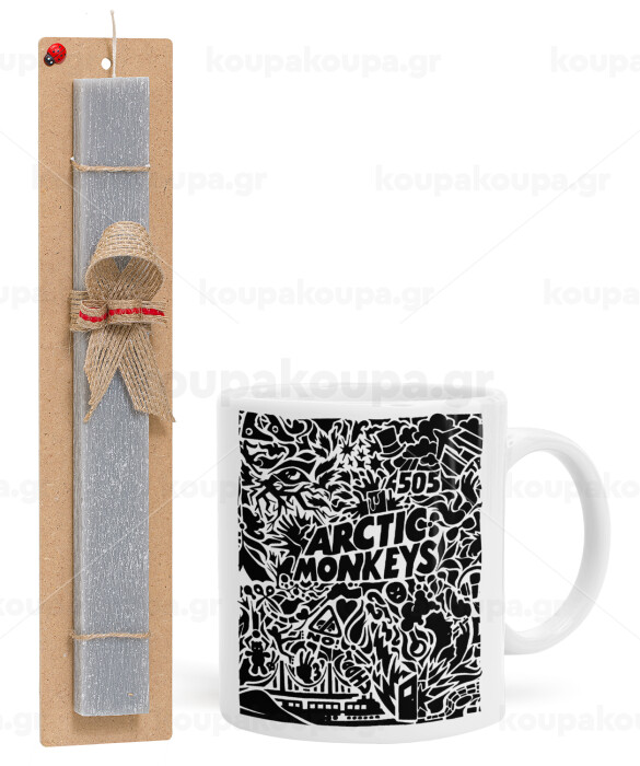 Arctic Monkeys, Easter Set, Ceramic Cup (330ml) & Easter aromatic flat candle (30cm) (GRAY)