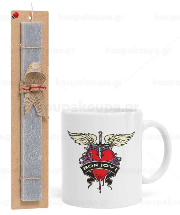 Bon Jovi, Easter Set, Ceramic Cup (330ml) & Easter aromatic flat candle (30cm) (GRAY)