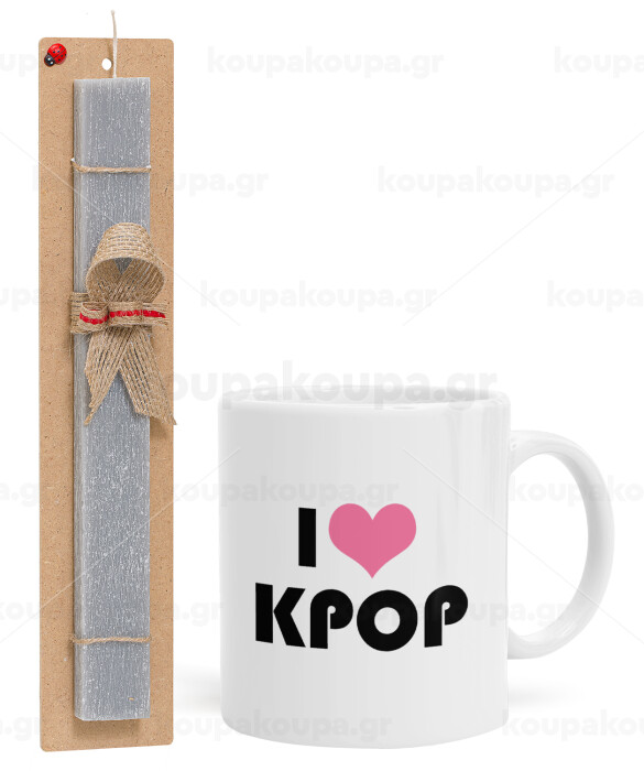 I Love KPOP, Easter Set, Ceramic Cup (330ml) & Easter aromatic flat candle (30cm) (GRAY)