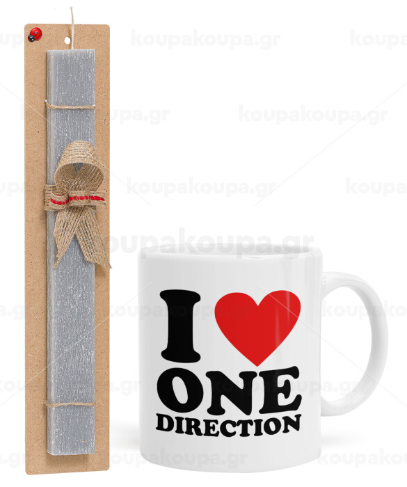 I Love, One Direction, Easter Set, Ceramic Cup (330ml) & Easter aromatic flat candle (30cm) (GRAY)