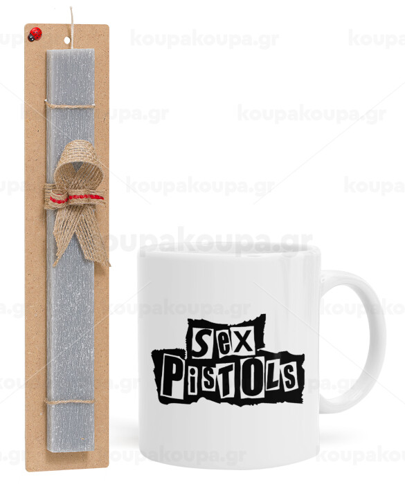 Sex Pistols, Easter Set, Ceramic Cup (330ml) & Easter aromatic flat candle (30cm) (GRAY)