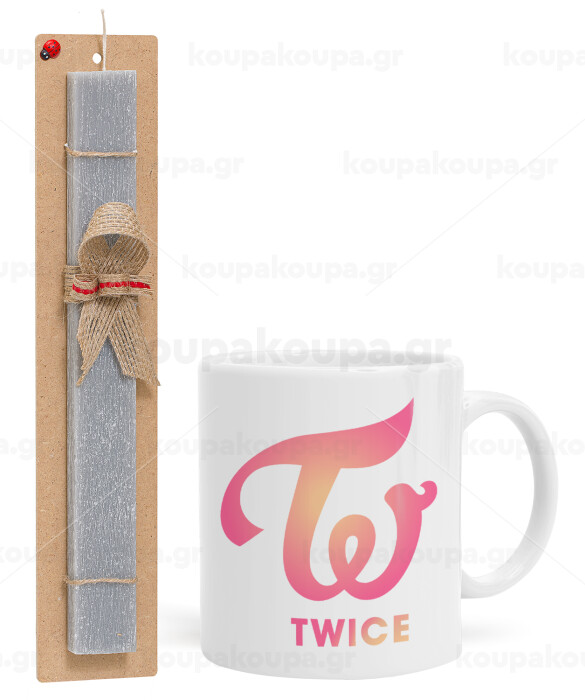 Twice, Easter Set, Ceramic Cup (330ml) & Easter aromatic flat candle (30cm) (GRAY)