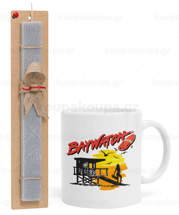 Baywatch, Easter Set, Ceramic Cup (330ml) & Easter aromatic flat candle (30cm) (GRAY)