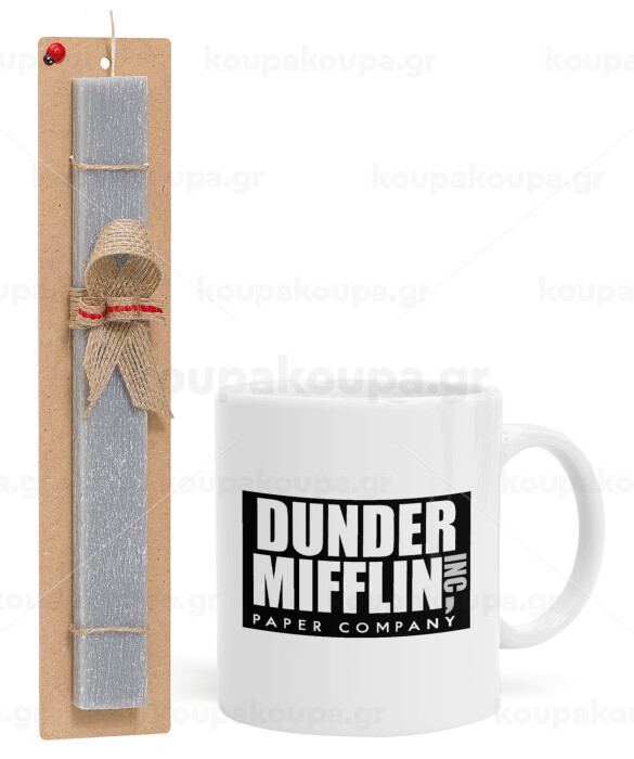 Dunder Mifflin, Inc Paper Company, Easter Set, Ceramic Cup (330ml) & Easter aromatic flat candle (30cm) (GRAY)