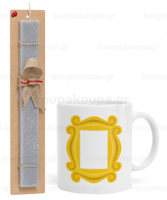 Friends frame, Easter Set, Ceramic Cup (330ml) & Easter aromatic flat candle (30cm) (GRAY)