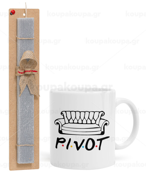 Friends Pivot, Easter Set, Ceramic Cup (330ml) & Easter aromatic flat candle (30cm) (GRAY)