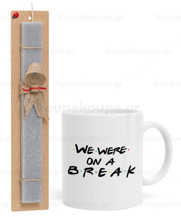 Friends we were on a break, Easter Set, Ceramic Cup (330ml) & Easter aromatic flat candle (30cm) (GRAY)