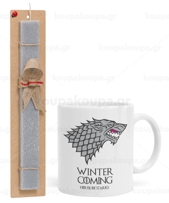 GOT House of Starks, winter coming, Easter Set, Ceramic Cup (330ml) & Easter aromatic flat candle (30cm) (GRAY)