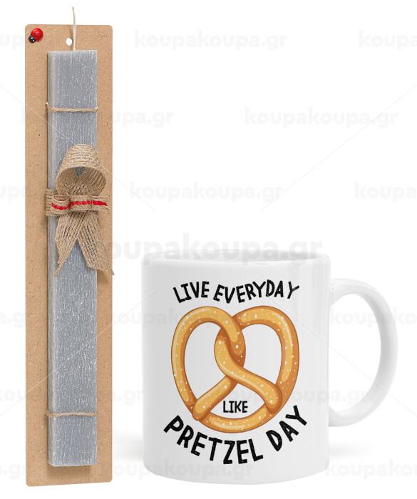The office, Live every day like pretzel day, Easter Set, Ceramic Cup (330ml) & Easter aromatic flat candle (30cm) (GRAY)