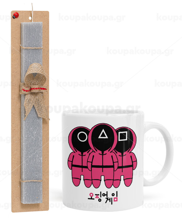 The squid game, Easter Set, Ceramic Cup (330ml) & Easter aromatic flat candle (30cm) (GRAY)
