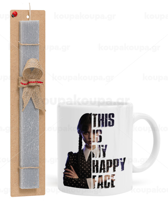 Wednesday, This is my happy face, Easter Set, Ceramic Cup (330ml) & Easter aromatic flat candle (30cm) (GRAY)