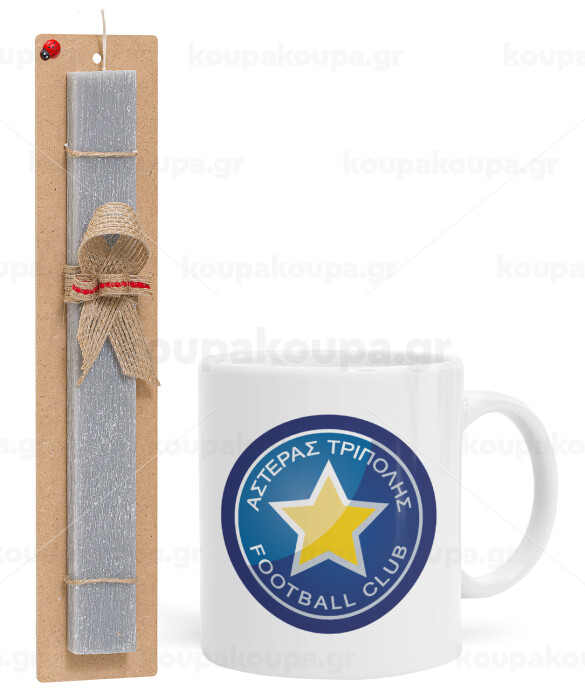 Asteras Tripolis, Easter Set, Ceramic Cup (330ml) & Easter aromatic flat candle (30cm) (GRAY)