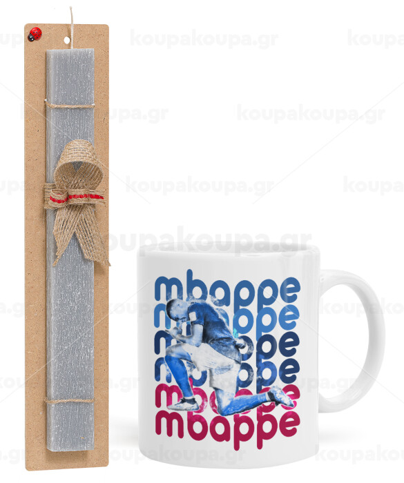 Kylian Mbappé, Easter Set, Ceramic Cup (330ml) & Easter aromatic flat candle (30cm) (GRAY)