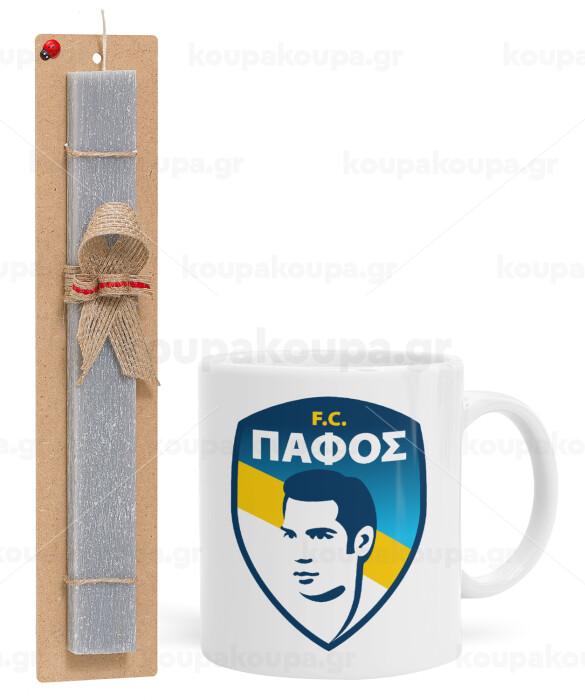 Πάφος FC, Easter Set, Ceramic Cup (330ml) & Easter aromatic flat candle (30cm) (GRAY)