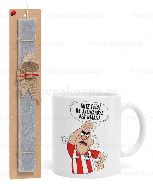 Τάκης, Άντε γεια, με ανώμαλους δεν μιλάω!, Easter Set, Ceramic Cup (330ml) & Easter aromatic flat candle (30cm) (GRAY)