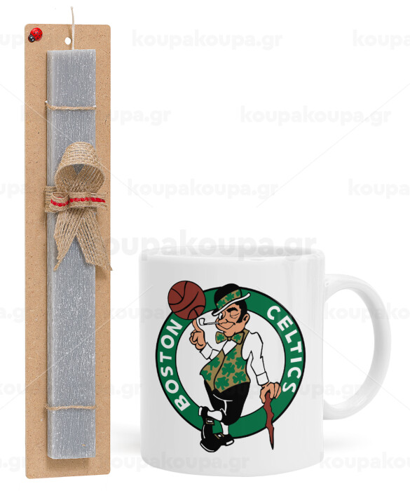 Boston Celtics, Easter Set, Ceramic Cup (330ml) & Easter aromatic flat candle (30cm) (GRAY)