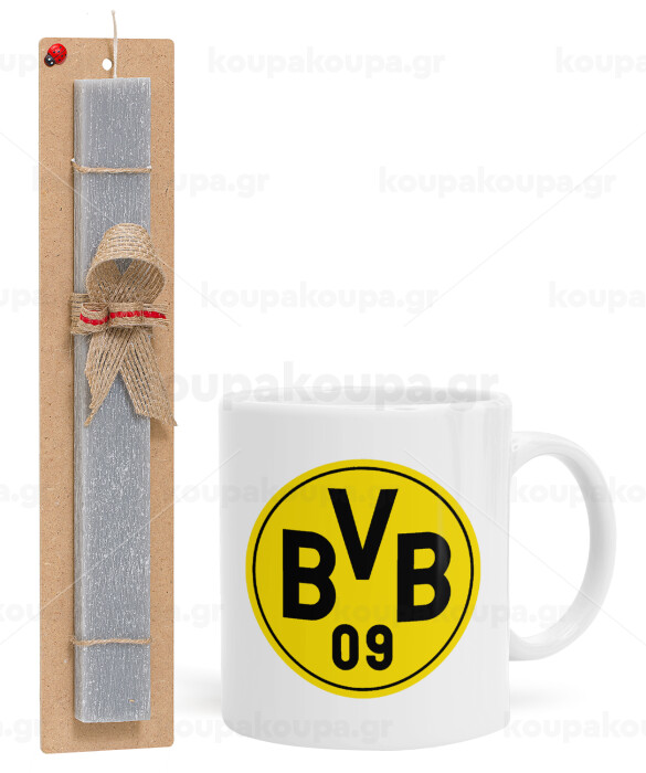 BVB Dortmund, Easter Set, Ceramic Cup (330ml) & Easter aromatic flat candle (30cm) (GRAY)