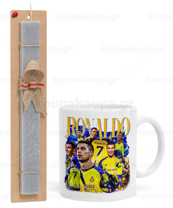 Cristiano Ronaldo Al Nassr, Easter Set, Ceramic Cup (330ml) & Easter aromatic flat candle (30cm) (GRAY)