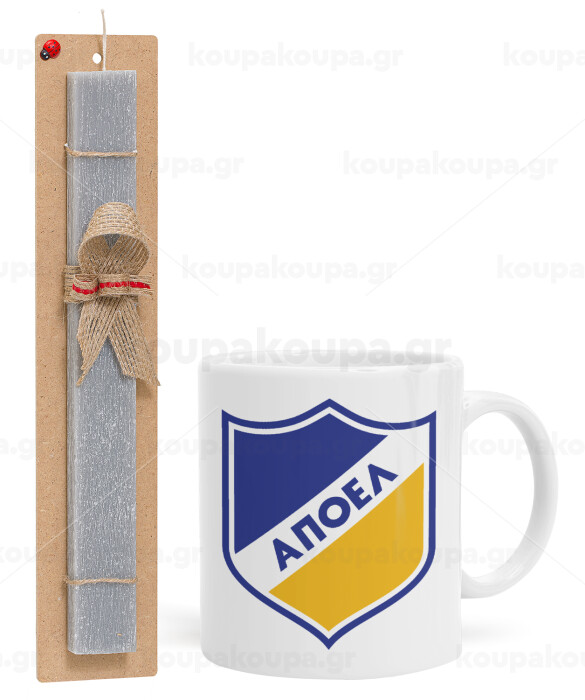 FC ΑΠΟΕΛ Λευκωσίας, Easter Set, Ceramic Cup (330ml) & Easter aromatic flat candle (30cm) (GRAY)