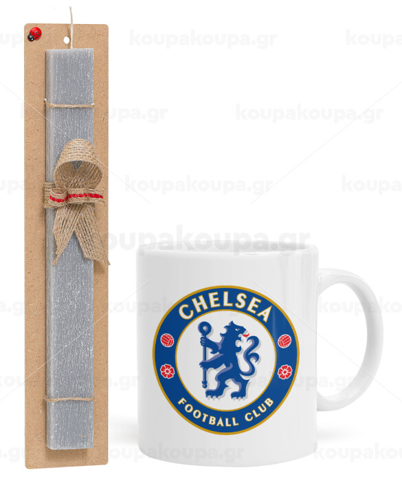 FC Chelsea, Easter Set, Ceramic Cup (330ml) & Easter aromatic flat candle (30cm) (GRAY)