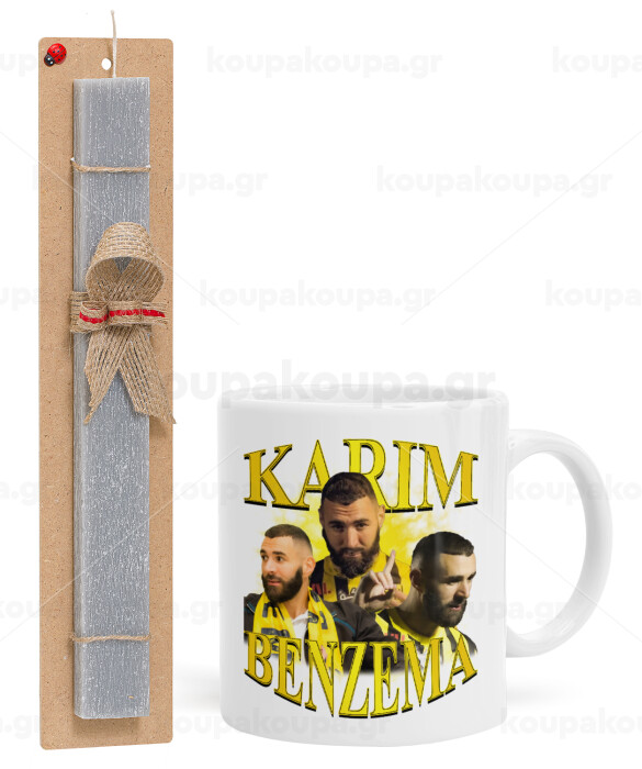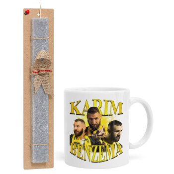 Karim Benzema, Easter Set, Ceramic Cup (330ml) & Easter aromatic flat candle (30cm) (GRAY)