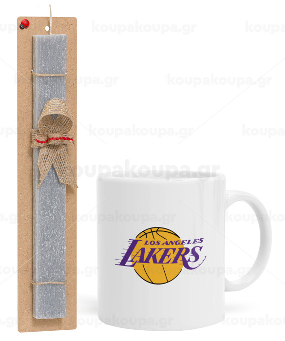 Lakers, Easter Set, Ceramic Cup (330ml) & Easter aromatic flat candle (30cm) (GRAY)