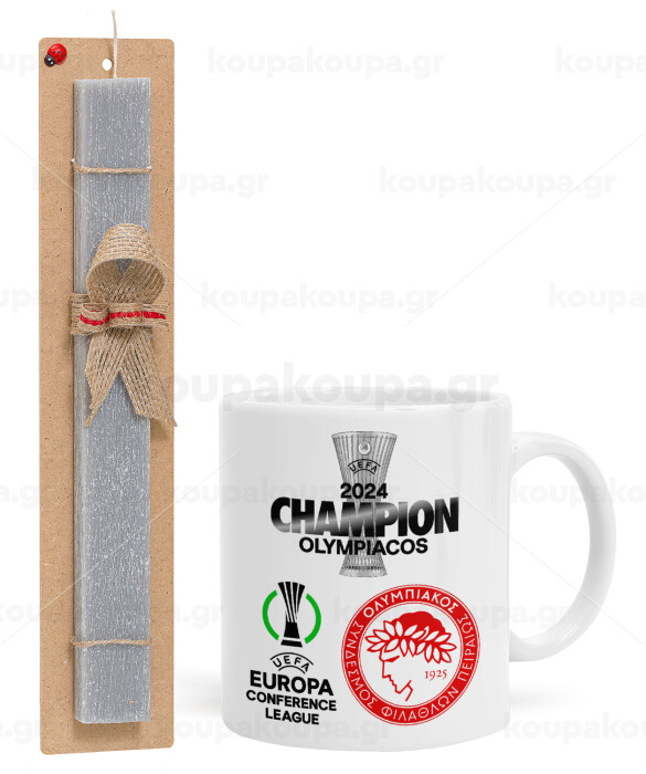 Olympiacos UEFA Europa Conference League Champion 2024, Easter Set, Ceramic Cup (330ml) & Easter aromatic flat candle (30cm) (GRAY)