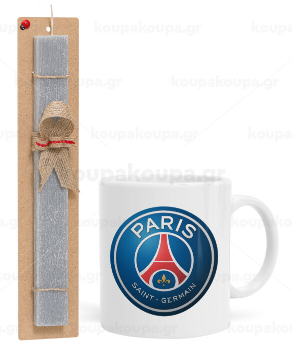 Paris Saint-Germain F.C., Easter Set, Ceramic Cup (330ml) & Easter aromatic flat candle (30cm) (GRAY)
