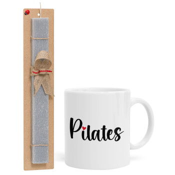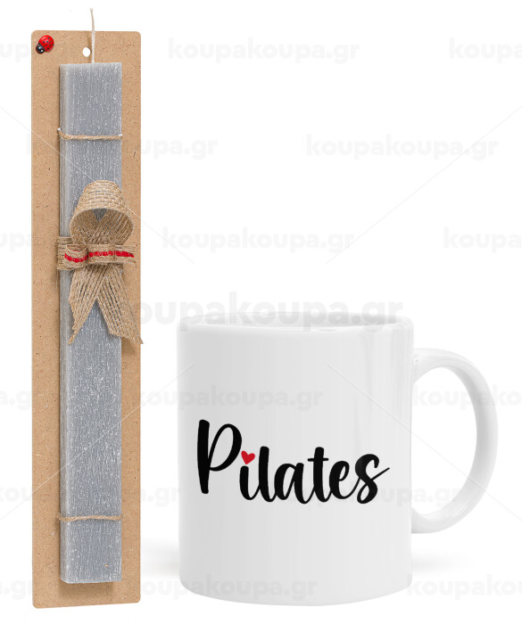 Pilates love, Easter Set, Ceramic Cup (330ml) & Easter aromatic flat candle (30cm) (GRAY)