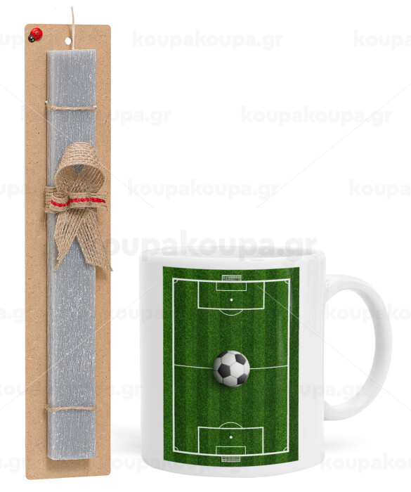Soccer field, Γήπεδο ποδοσφαίρου, Easter Set, Ceramic Cup (330ml) & Easter aromatic flat candle (30cm) (GRAY)