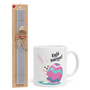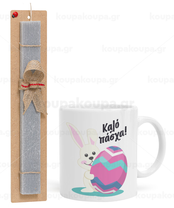 Καλό πάσχα, Easter Set, Ceramic Cup (330ml) & Easter aromatic flat candle (30cm) (GRAY)