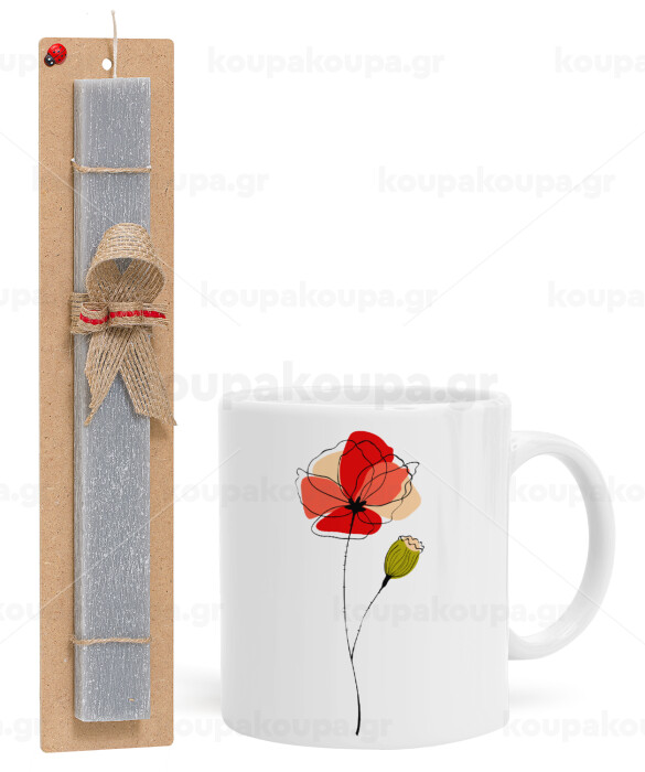 Red poppy flowers papaver, Easter Set, Ceramic Cup (330ml) & Easter aromatic flat candle (30cm) (GRAY)