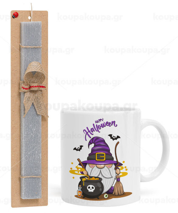 Happy Halloween (Χαλοουίν), Easter Set, Ceramic Cup (330ml) & Easter aromatic flat candle (30cm) (GRAY)