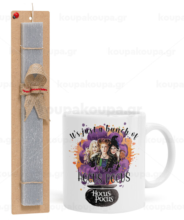 Hocus Pocus, Easter Set, Ceramic Cup (330ml) & Easter aromatic flat candle (30cm) (GRAY)