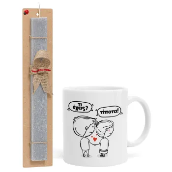 Τι έχεις? Τίποτα!, Easter Set, Ceramic Cup (330ml) & Easter aromatic flat candle (30cm) (GRAY)