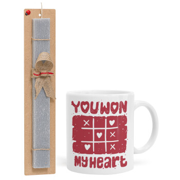 Τρίλιζα you won my heart, Easter Set, Ceramic Cup (330ml) & Easter aromatic flat candle (30cm) (GRAY)