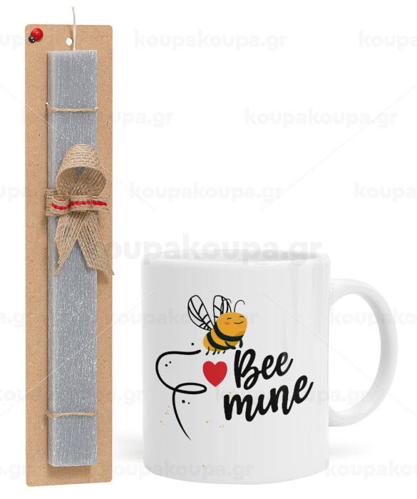 Bee mine!!!, Easter Set, Ceramic Cup (330ml) & Easter aromatic flat candle (30cm) (GRAY)