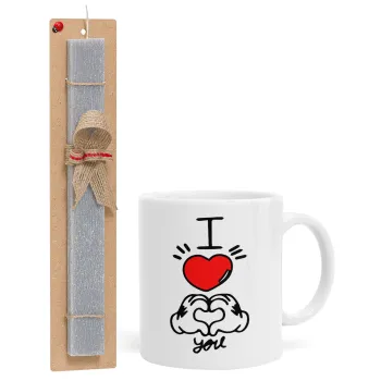 comics hands love, Easter Set, Ceramic Cup (330ml) & Easter aromatic flat candle (30cm) (GRAY)