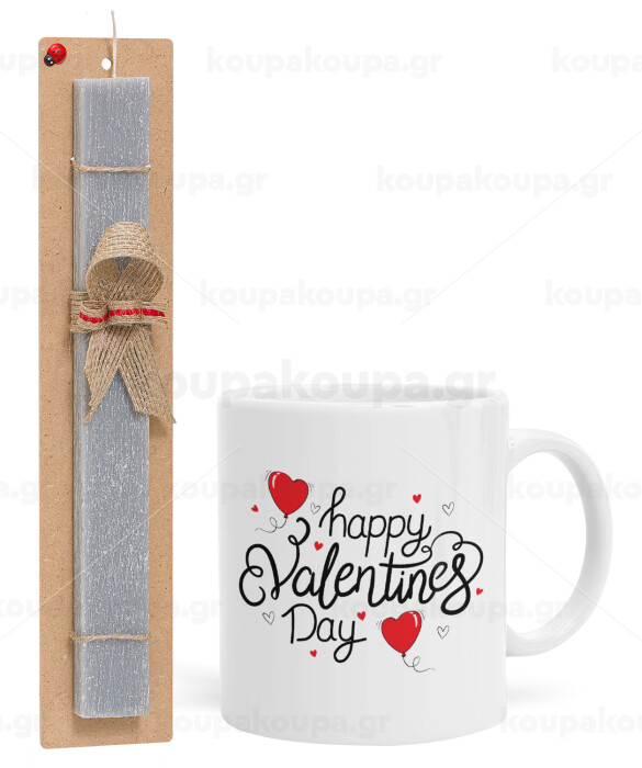 Happy Valentines Day!!!, Easter Set, Ceramic Cup (330ml) & Easter aromatic flat candle (30cm) (GRAY)