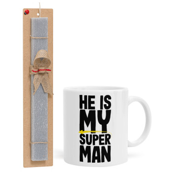 He is my superman, Easter Set, Ceramic Cup (330ml) & Easter aromatic flat candle (30cm) (GRAY)