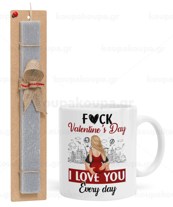 I love You Everyday , Easter Set, Ceramic Cup (330ml) & Easter aromatic flat candle (30cm) (GRAY)