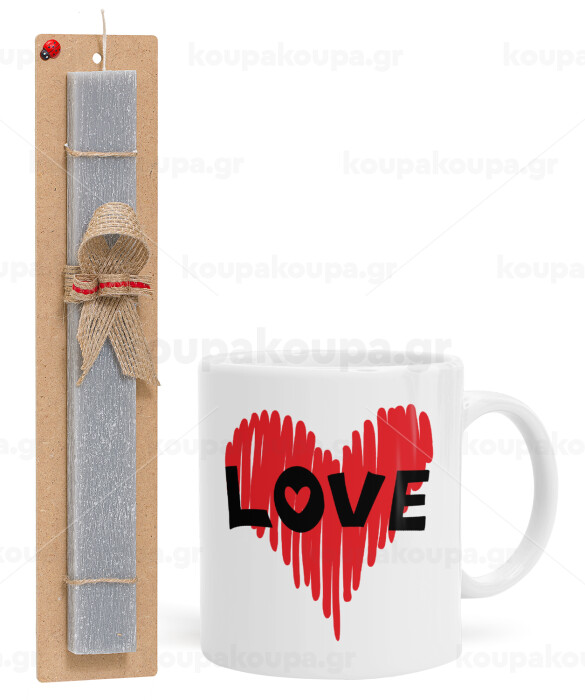 I Love You red heart, Easter Set, Ceramic Cup (330ml) & Easter aromatic flat candle (30cm) (GRAY)