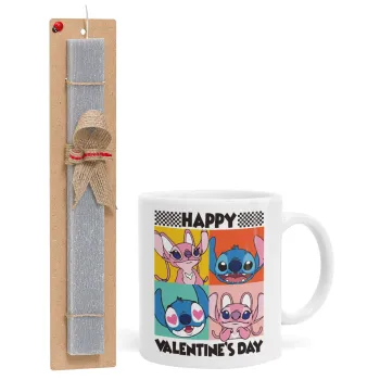 Lilo & Stitch Happy valentines day, Easter Set, Ceramic Cup (330ml) & Easter aromatic flat candle (30cm) (GRAY)