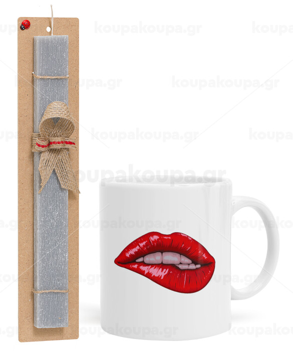 Lips, Easter Set, Ceramic Cup (330ml) & Easter aromatic flat candle (30cm) (GRAY)