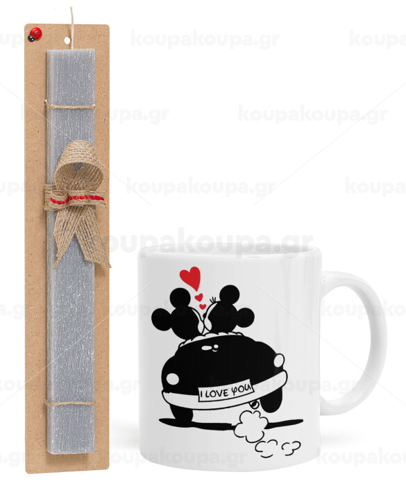 Love Car, Easter Set, Ceramic Cup (330ml) & Easter aromatic flat candle (30cm) (GRAY)