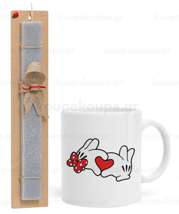 Love hands, Easter Set, Ceramic Cup (330ml) & Easter aromatic flat candle (30cm) (GRAY)