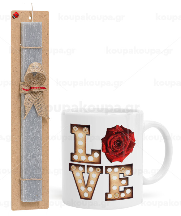 Love lights and roses, Easter Set, Ceramic Cup (330ml) & Easter aromatic flat candle (30cm) (GRAY)
